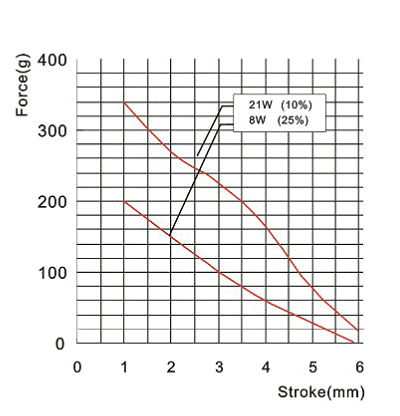 圖解:保持式電磁鐵因為內置永磁鐵,所以產品的力量大小并不是和功率的大小成正比,力量的大小與行程的大小、永磁鐵磁力大小有關。